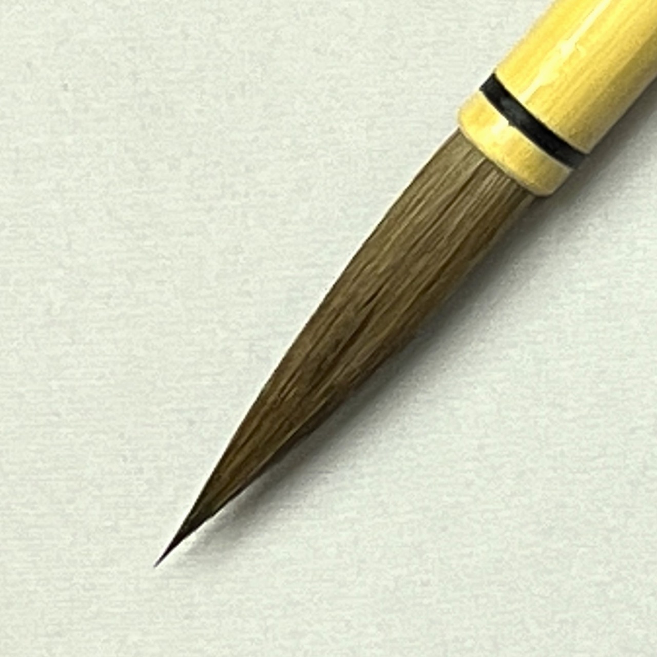 馬毛と狸毛を使用した兼毛筆。穂先がまとまりやすく仕上げており、強すぎず程良い腰をつけることにより扱い易く美しい線が表現出来ます。半紙4文字6文字サイズで楷書・行書に適しています。