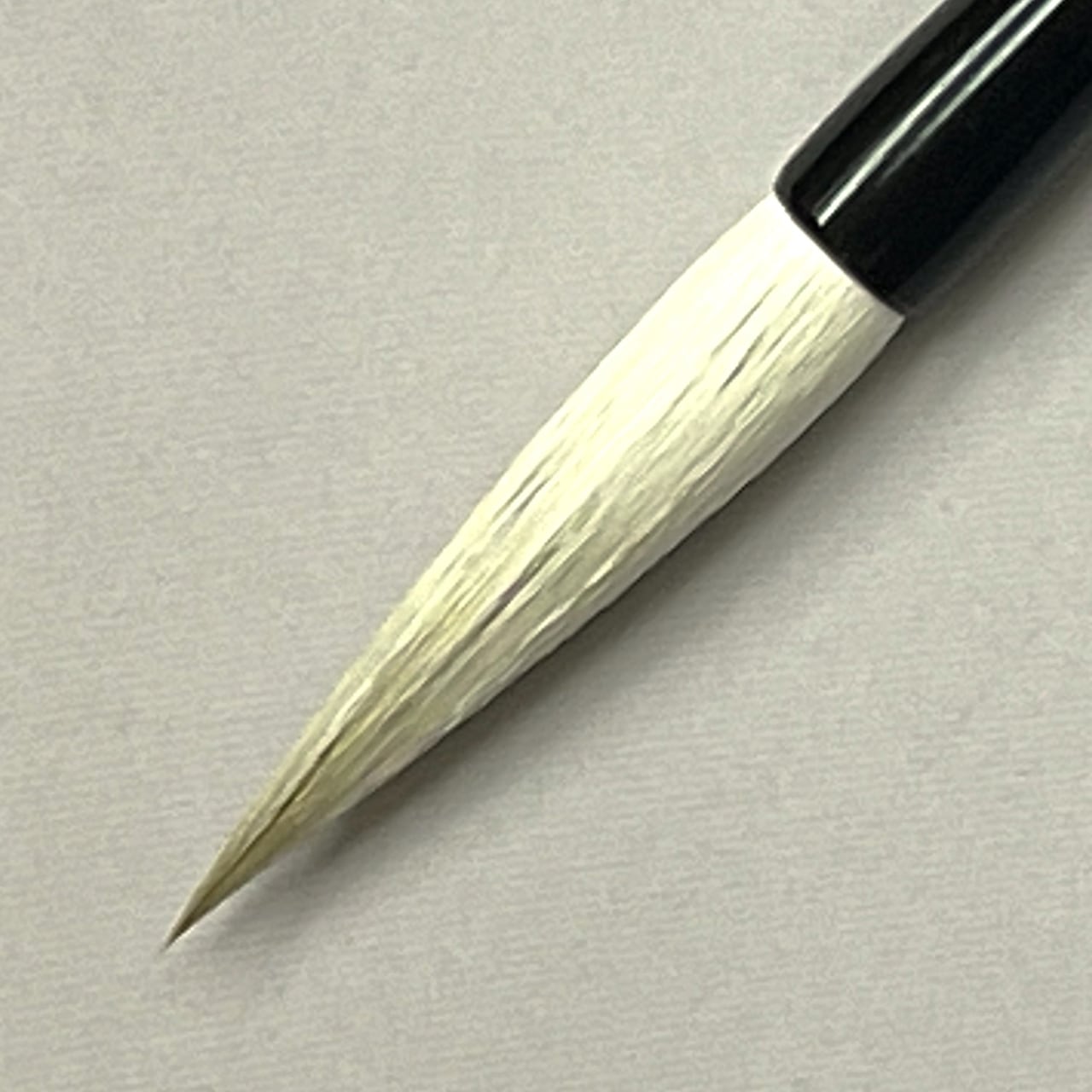 茶馬毛と羊毛で仕上げた兼毛筆。柔らかく繊細で美しい線が表現でき、馬毛を使用する事により穂先がまとまり易く仕上がっているので幅広くの方に扱い易く出来ています。半紙2文字、条幅2行の行書・草書にはもちろん楷書にもお使いいただけます。